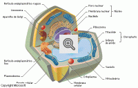 Núcleo: é o órgão mais importante em quase todas as células animais e vegetais; é esférico, mede cerca de 5 µm de diâmetro, e está rodeado por uma membrana dupla. A interação com o citoplasma acontece através de orifícios chamados de poros nucleares. Dentro do núcleo, as moléculas de ADN e proteínas estão organizadas em cromossomos, que costumam aparecer dispostos em pares idênticos. O núcleo controla a síntese de proteínas no citoplasma. O ARN mensageiro (ARNm) é sintetizado de acordo com as instruções contidas no ADN e deixa o núcleo através dos poros. Já no citoplasma, o ARNm une-se a corpos pequenos chamados ribossomas e codifica a estrutura primária de uma proteína específica.